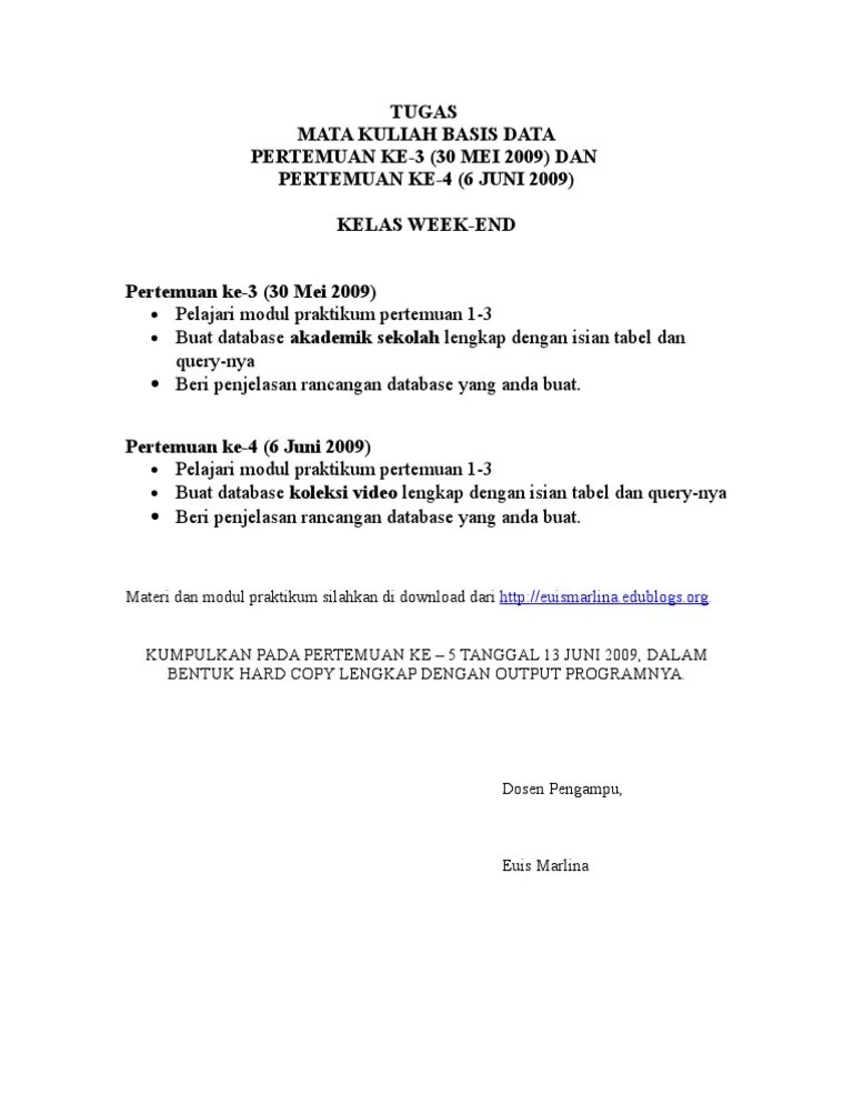 Untuk mengetahui gambaran umum dari rancangan basis data. Perancangan basis data secara fisik fase 6 : Dalam pemecahan permasalahan umum di luar materi perkuliahan. Model yang lain seperti model hierarkis dan model jaringan menggunakan cara yang lebih eksplisit untuk mewakili hubungan antar tabel. 2 pengertian basis data basis : Format tertentu, dapat saja tidak lengkap dan terduplikasi. Sebuah tempat atau wadah data : Perancangan merupakan suatu hal yang sangat penting dalam pembuatan basis data. Diajukan sebagai tugas mata kuliah perancangan basis data. Dicatat pada buku induk serta tingkat akuransi data kurang. Skema adalah deskripsi lengkap tentang . Perancangan basis data secara logika fase 5 : Penambahan record/field agar data yang tidak lengkap menjadi lengkap.